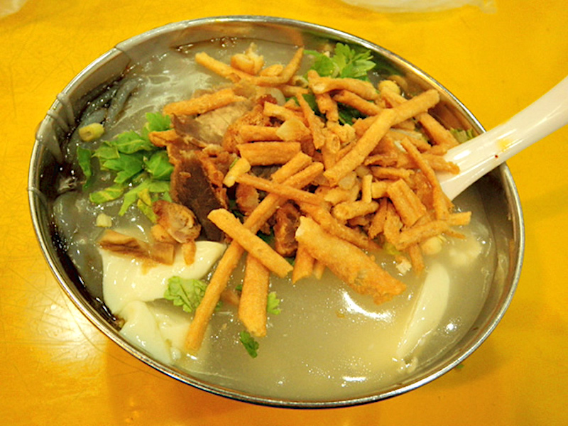 成都の名物、豆腐脳。いたるところにお店があります。名前だけ見るとその字面からおいしさを微塵も感じません。が、これがとってもおいしいのです。ふわふわやわやわのお豆腐に、糊状になった片栗粉が乗っていて、香菜、ネギ、牛肉、揚げ麺等々がトッピングされてます(本当ならここにラー油もたっぷりかかっています)。これをひたすらかき混ぜて食べるとおいしいのなんの。ぼくが食べたのは牛華豆腐脳 成都店でした。