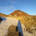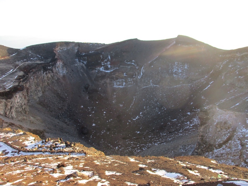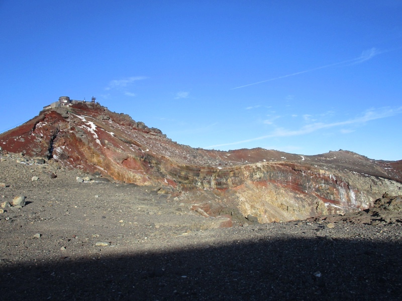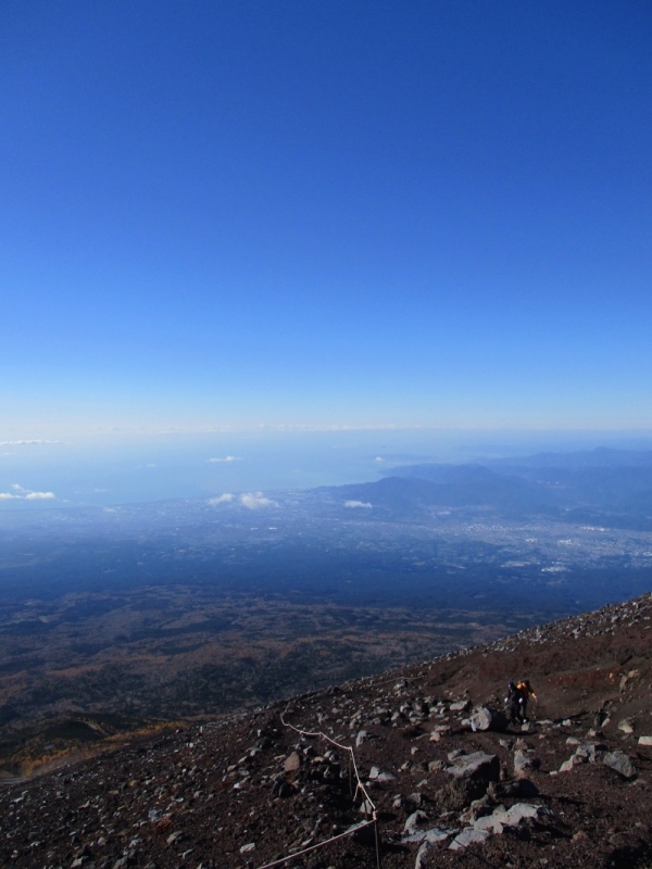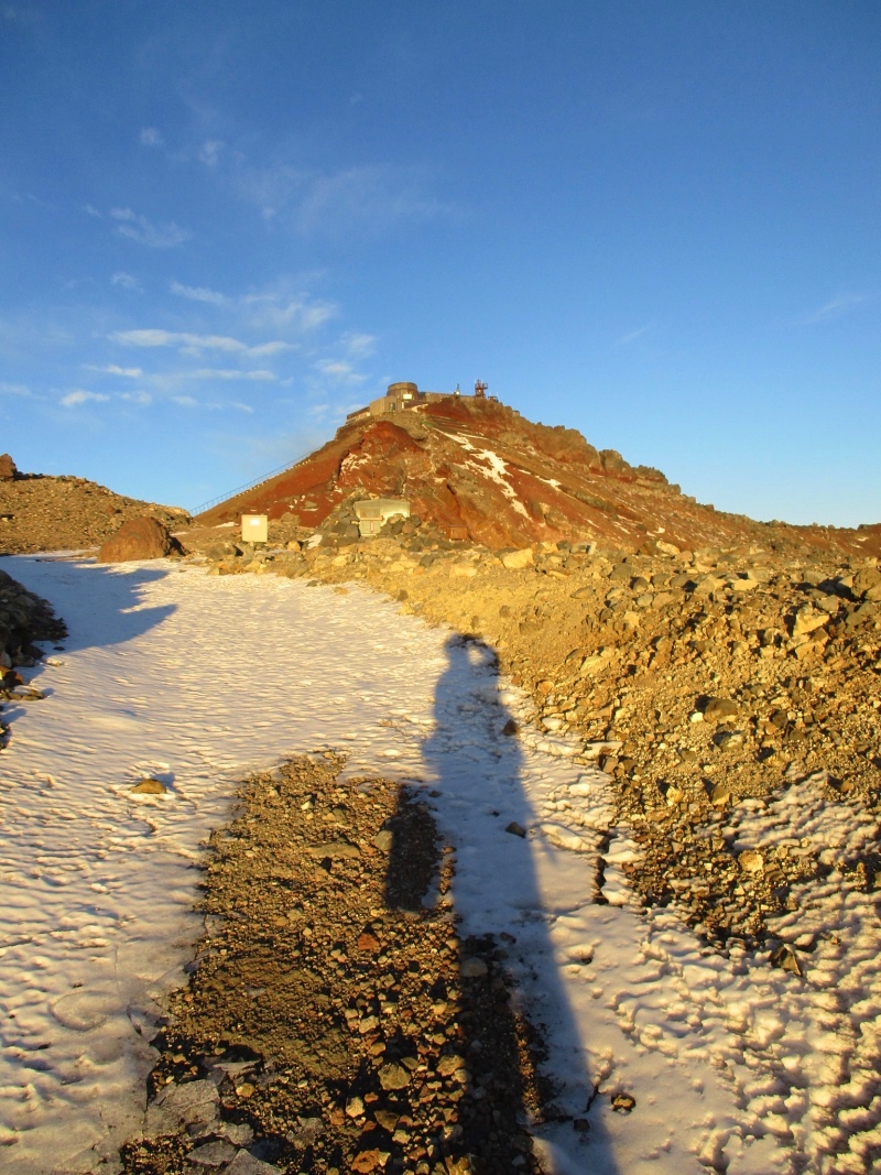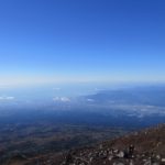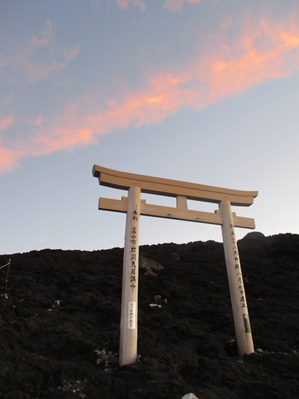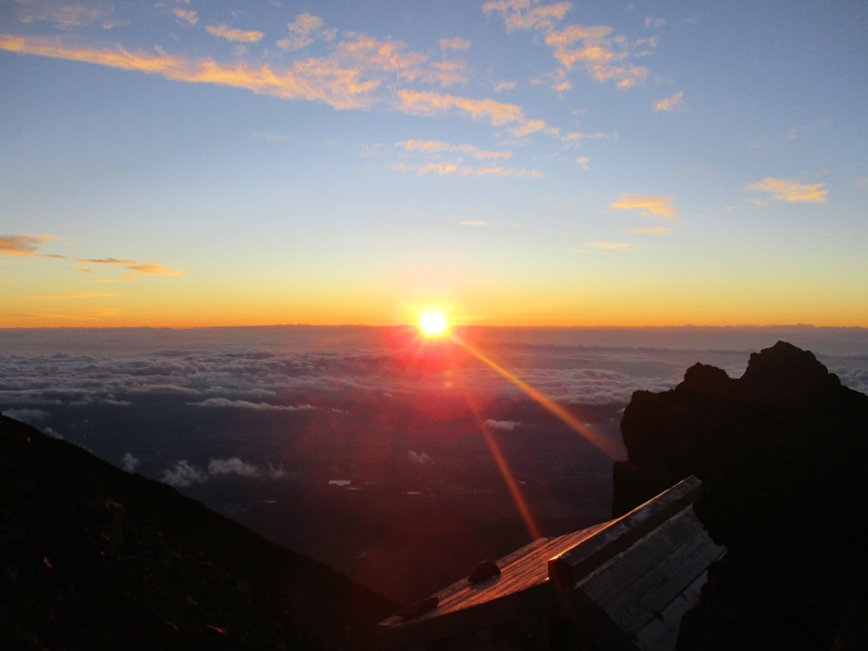 富士宮口山頂に辿りつき、オレンジ色に染まる東の空を見ていると、やがて、太陽が昇りはじめました。シーズン中は多くの人で賑わうご来光の時間ですが、今朝は誰の姿もありません。新しく生まれた光に包まれて、そこにあったのは富士山とぼくだけです。