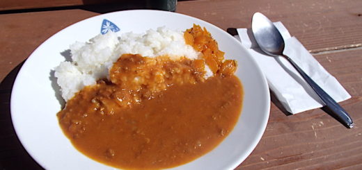 涸沢の顔とも言っていい涸沢ヒュッテ。ここのテラスでは穂高の山々を眺めながら生ビール片手におでんをつつくこともできる幸せ小屋です。涸沢カールの標高は2300m。このくらいの高さにある山小屋だと、カレーは大体、レトルトになります。それでも十分おいしいのですが、ここ、涸沢ヒュッテのカレーはじっくり煮込んだ手作りだからさらにおいしい。辛口のチキンカレーっていうのも嬉しい。西穂高岳から、奥穂高岳をこえ、涸沢ヒュッテにたどり着いたときは嬉しかったです。紅葉と一緒に身体全部で味わいました。ごちそうさまでした。