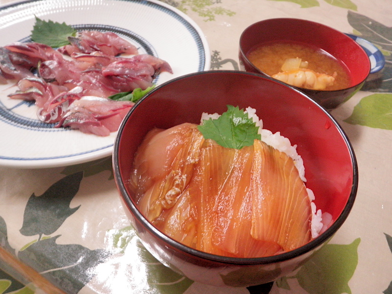 父島でぼくがお世話になったのは「なぎ屋」という素泊まり宿です。2011年の4月にリニューアルしたばかりの綺麗な室内と、おかみさんのおおらかなあたたかさで、最高に居心地のいい空間です。素泊まり宿なので、基本、ご飯は自炊です。外で食べてもいいし、何か買ってきてもOK。宿に泊まっている皆さんが釣ってきた魚をおすそ分けしてもらうなんてことも時にはあります。写真の魚もそう。フィッシングツアーで大漁になったさわら、アジ、アカバを、宿のご主人が美しい手際でさばいてくださいました。これがビックリするほどおいしいんですよ。しあわせのテーブルへご相伴いただいてありがとうございました。