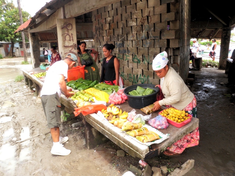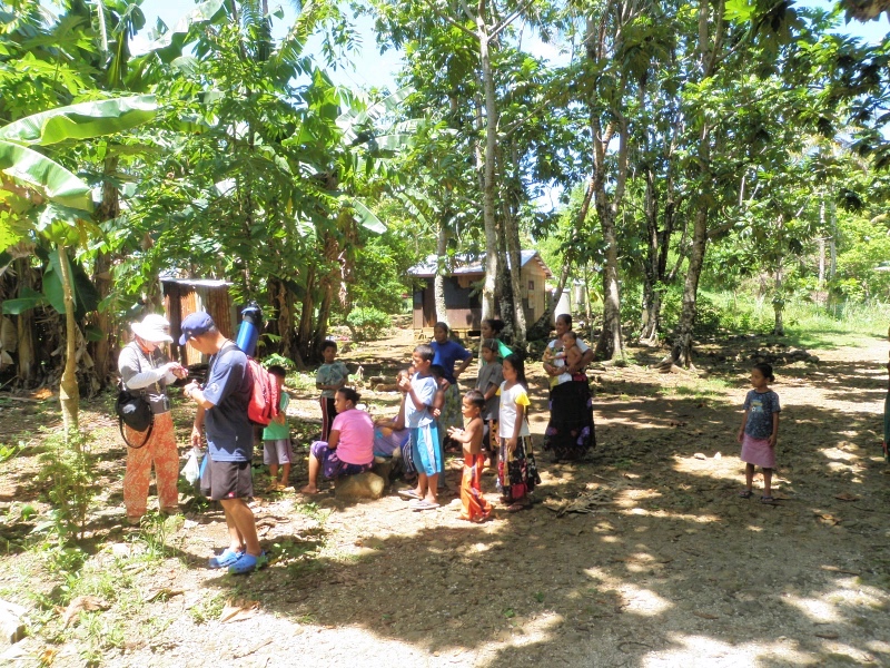 長老お2人にさよならを告げたあとは、他の村々を訪ねました。椰子の実のジュースをいただいたり、蒸かしたパンの実をついたり、井戸で洗濯をする女の子達と話をしたりした。ぼくはお礼として、ほんの少しペンやお菓子を手渡しました。すると、必ず返ってくる言葉がありました。「Kinisow(キニッソウ)」でした。