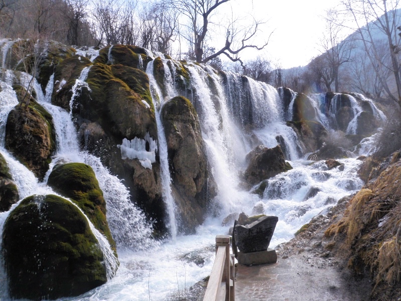 ゲストハウスでも親切な友人ができました。青島、重慶から遊びにきていた中国人と、上海に留学していた日本人です。朝一番にゲートをくぐり、4人で冬の九寨溝を歩きました。何万年という時間をかけて作られた信じられないほど美しい光景を、共に驚き楽しみました。
