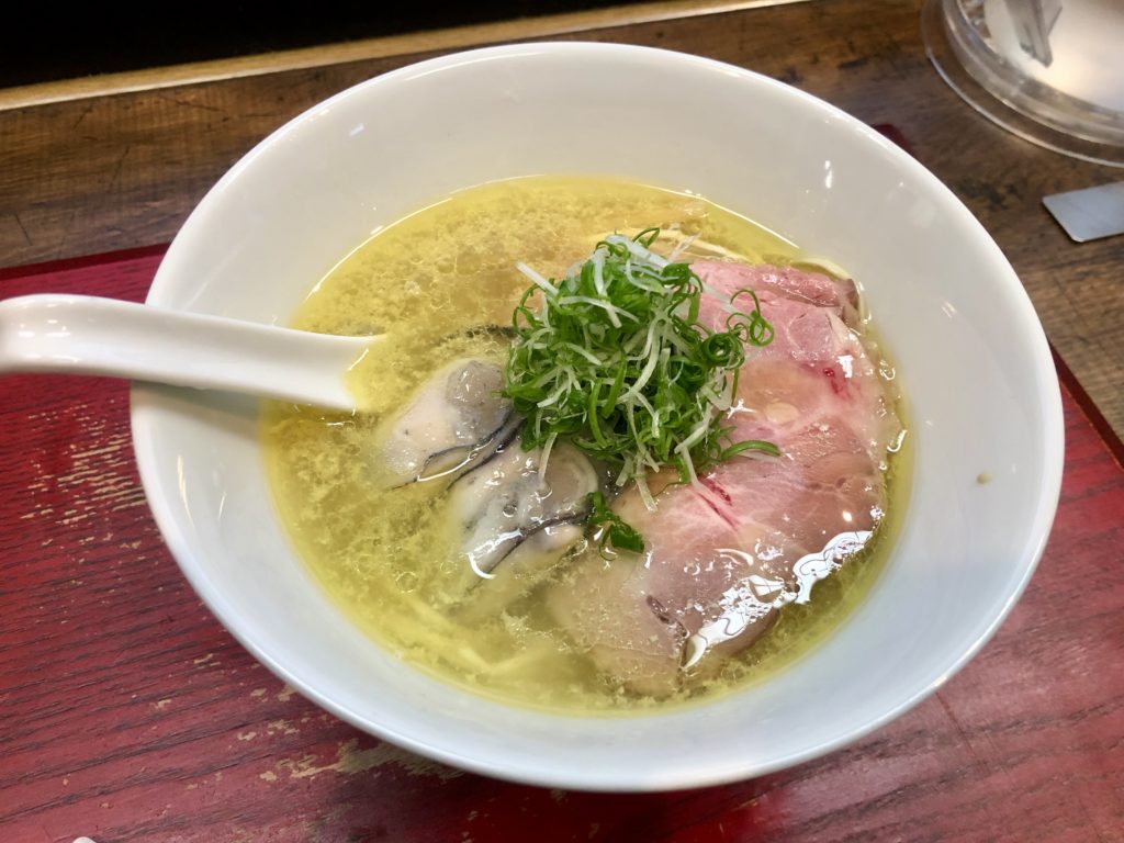 いただいたのは一番人気の塩蕎麦に、期間限定の牡蠣が乗ったもの。そうですかそうですか、こんなにおいしいですか。想像を遥かに超えたスープの旨味と深味を身体中に染み込ませるように味わいました。ごちそうさまでした。