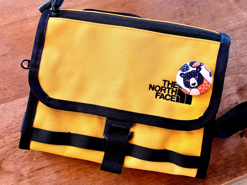 The North Faceのフィルデンス ギアミュゼットです。容量1リットルで小さめサイズなのですが、マチがあるので想像以上にいろいろと入ります。貴重品だけを持ってちょっと外出なんてときにとても重宝。サミットゴールドのど派手な色味もかわいいです。生地もタフで言う事なし。