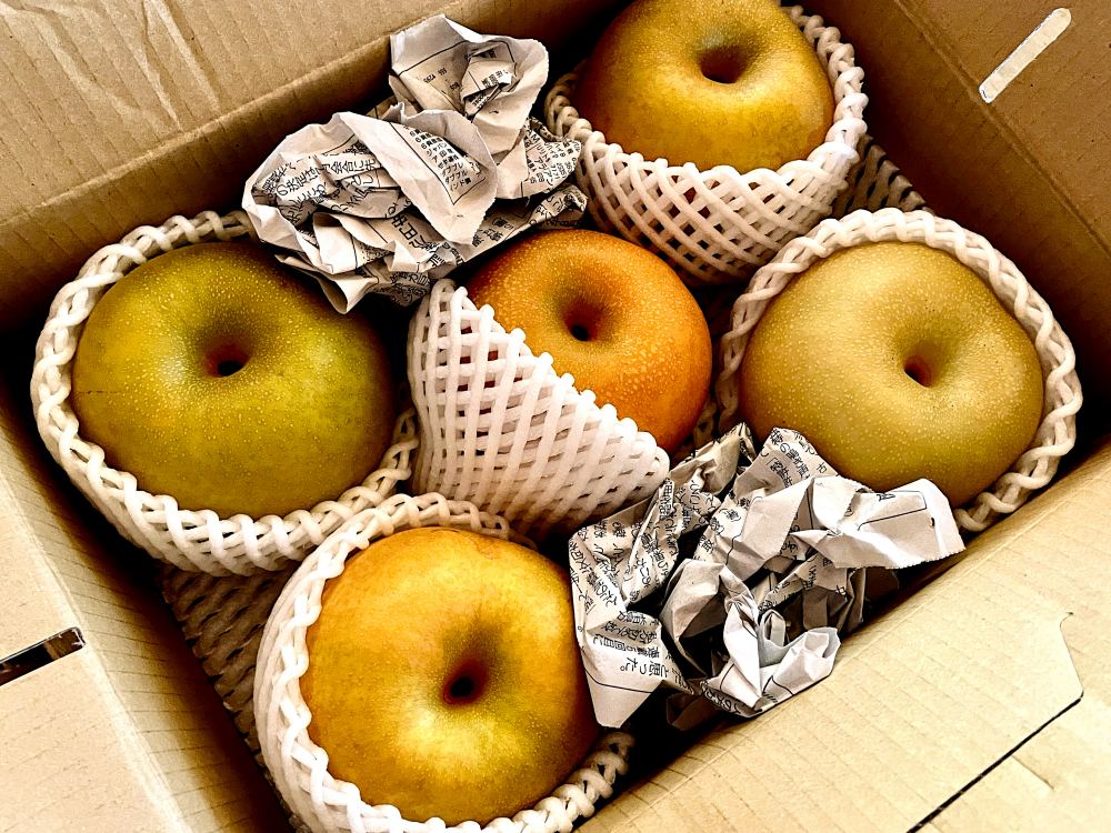横須賀に暮らす友人が、誕生日のプレゼントにとわざわざ鳥取から取り寄せてくれた新甘泉です。これがとってもおいしいのです。ぼくが住んでいる地域は梨の産地です。地元の皆さんは梨の味わいにうるさいのです。妻も、妻のお母さんも、小さい頃からたくさん梨を食べているので、もちろん大好きだしこだわりがあります。そんな2人がすごい!と言っておいしそうに食べていました。こういう贈り物は本当にありがたいと、心から想います。