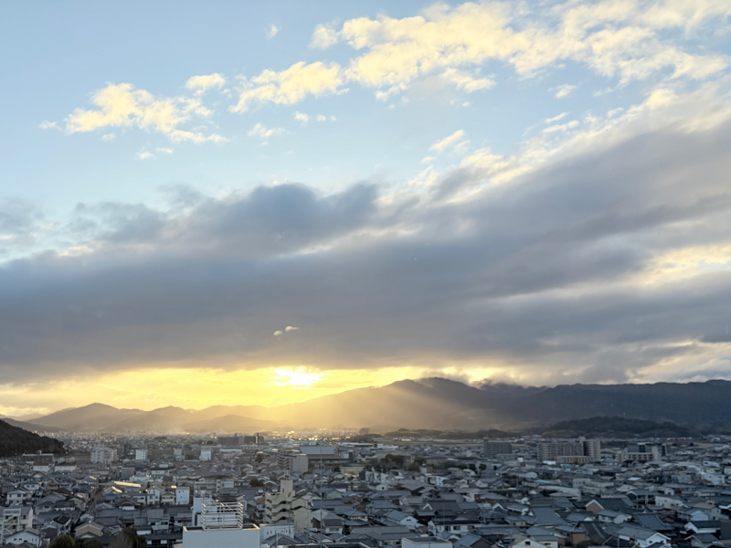 旅の終わりにホテル最上階のスパへと足を運びました。露天風呂に浸かり外を眺めていると、三輪や橿原の街を朝日が照らしはじめます。循環と継承を繰り返し、休むことなく変化し続ける森羅万象。強固なエゴと矮小な頭脳で縛られた今を手放して、もっと自由に、もっと軽やかに、この世界での日々を楽しめたらいいのに。出雲を、大和を、「これまで」のすべてを、「これから」へとしなやかにつないでいく呼吸の仕方を、ぼくは思い出そうとしていました。