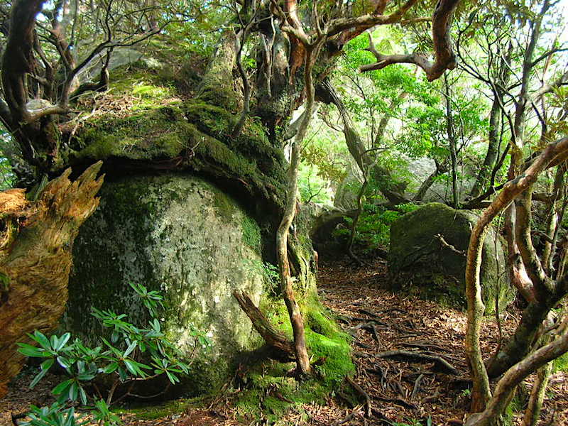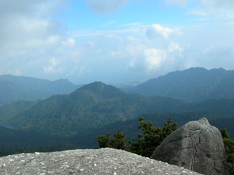 2時間ほど森を歩き、太忠岳の頂上にたどり着きます。山頂には大きな大きな岩がありました。天柱石と呼ばれる高さ約40mの花崗岩をよじ登れば、眼下には、屋久島の心臓部とも言える緑の山並みが広がります。空と森の間に腰を下ろして、ペットボトルの水を飲み、おにぎりを食べました。幸せで身体が震えました。