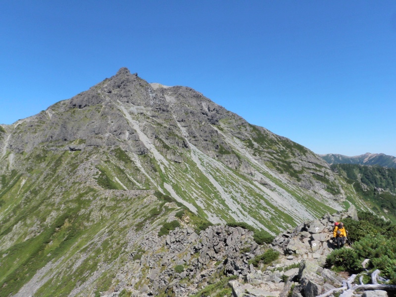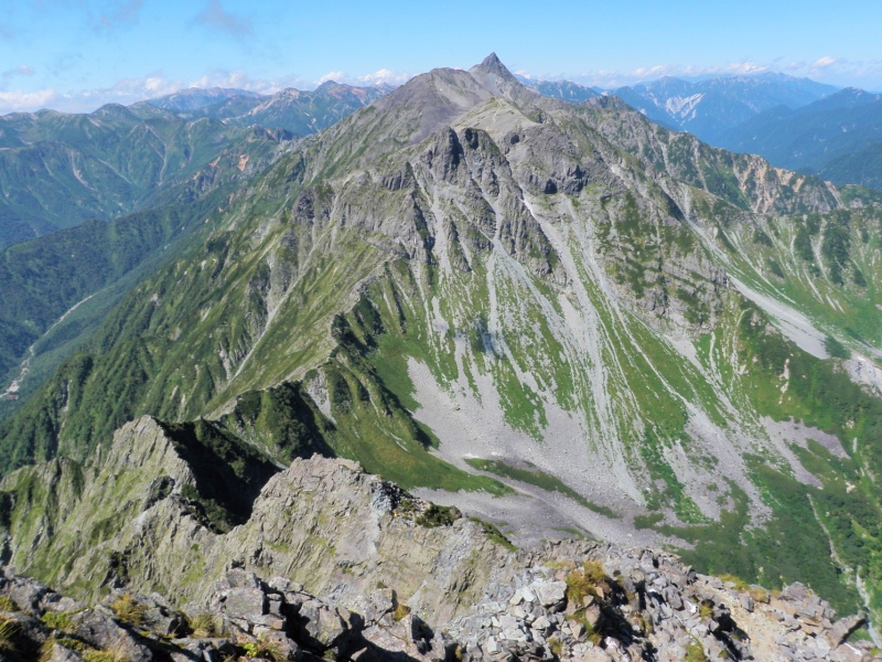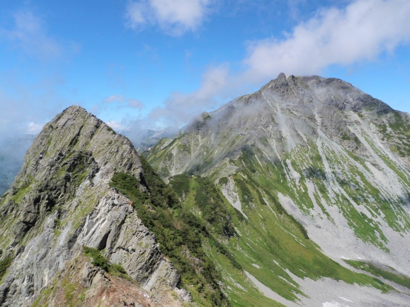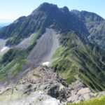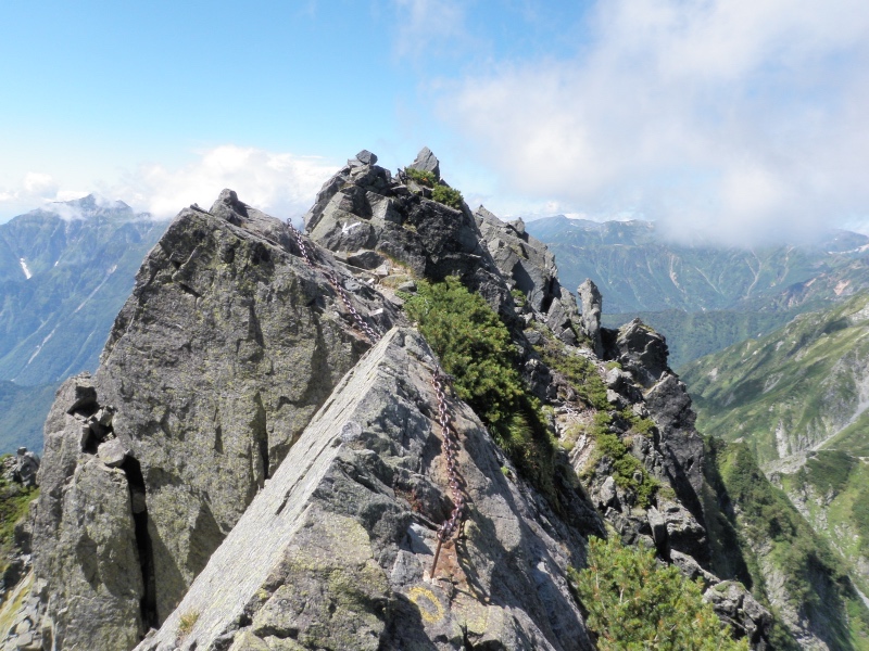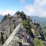 北アルプスの南岳と北穂高岳を結ぶV字状に鋭く切れ込んだ岩の稜線、天空にかかる荒々しくも繊細なその吊り橋を大キレットと呼びます。痩せ細り崩れやすくなった岩が連なるそのルートは、毎年何人もの死傷者を出すほど、一般登山道としては異例の難易度を誇ります。