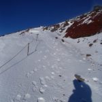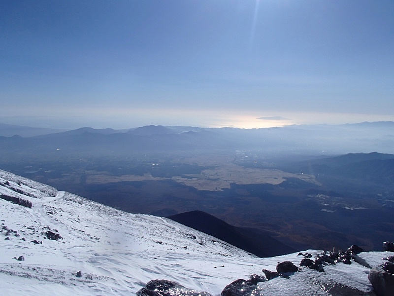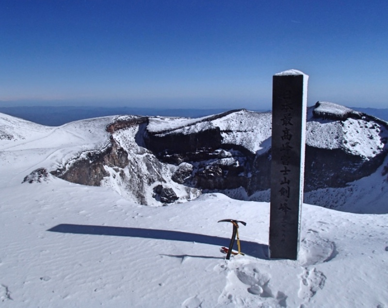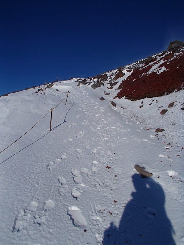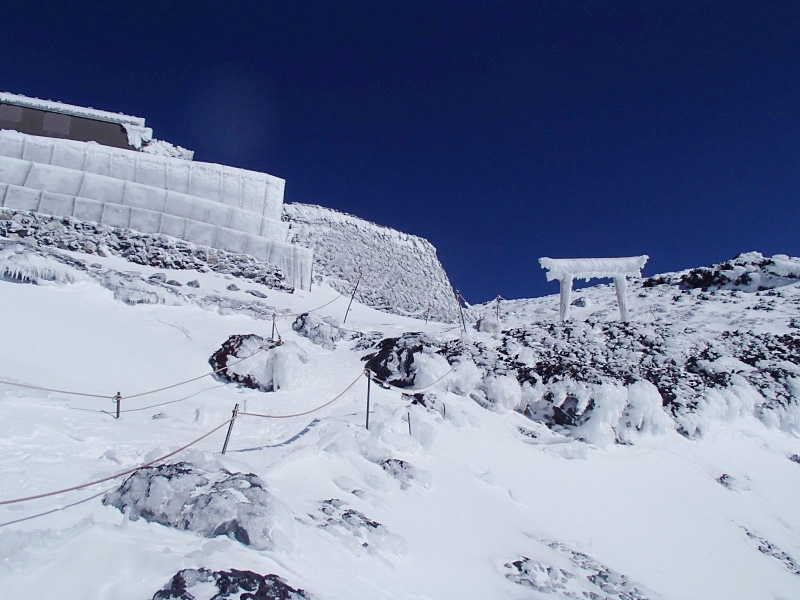 ピッケルを雪に突き刺し山頂を見上げます。冷たく澄んだ空気をゆっくり、大きく、身体いっぱいに吸い込み、細かく弾む息を落ち着かせました。青い空は笑っています。真っ白な富士山も笑っています。
